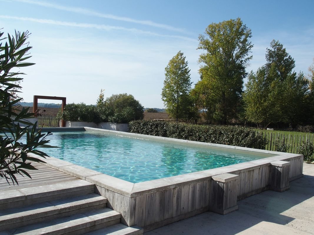 In de tuin bevindt zich een prachtig zwembad met lage muurtjes en een poolhouse. De weilanden zijn ideaal voor het houden van dieren.