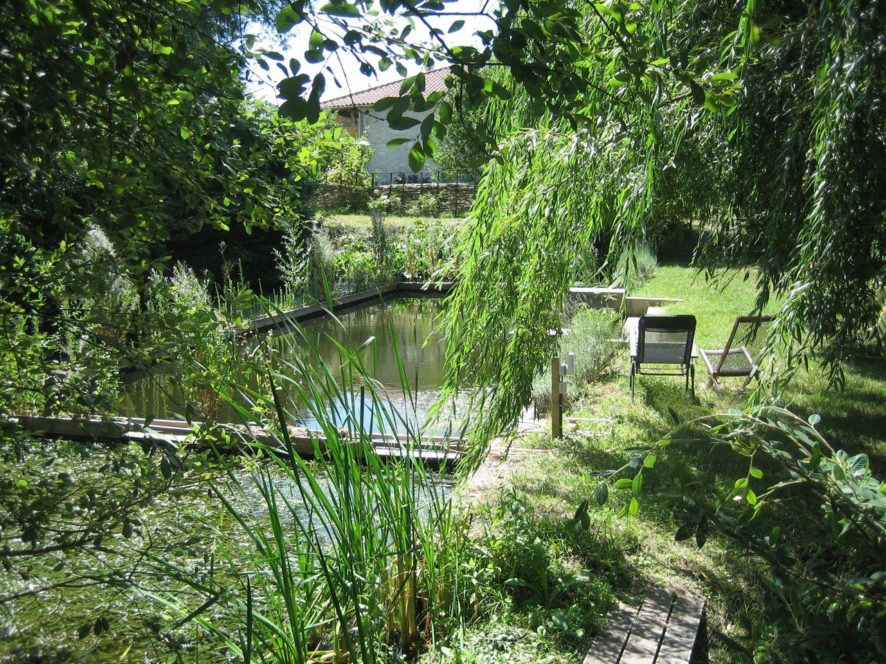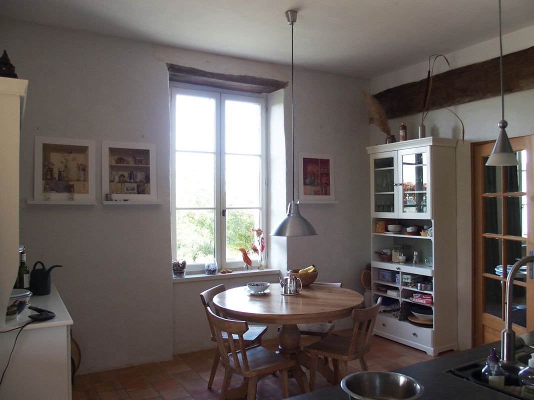 This domain has an ideal location with beautiful views. The house was thoroughly and tastefully restored with the help of a competent architect. The entry hall gives access to a cozy living room with fireplace, adjacent open kitchen with covered terrace. A bedroom with bathroom. Desk and buanderie. On the first floor two bedrooms and bathroom. Adjacent to the house a garage and a guesthouse with living space and two bedrooms. The house is heated with geothermal energy. Around the house a beautifully planted garden with ornamental trees and fruit trees. A natural swimming pond is permanently filled by a source.
