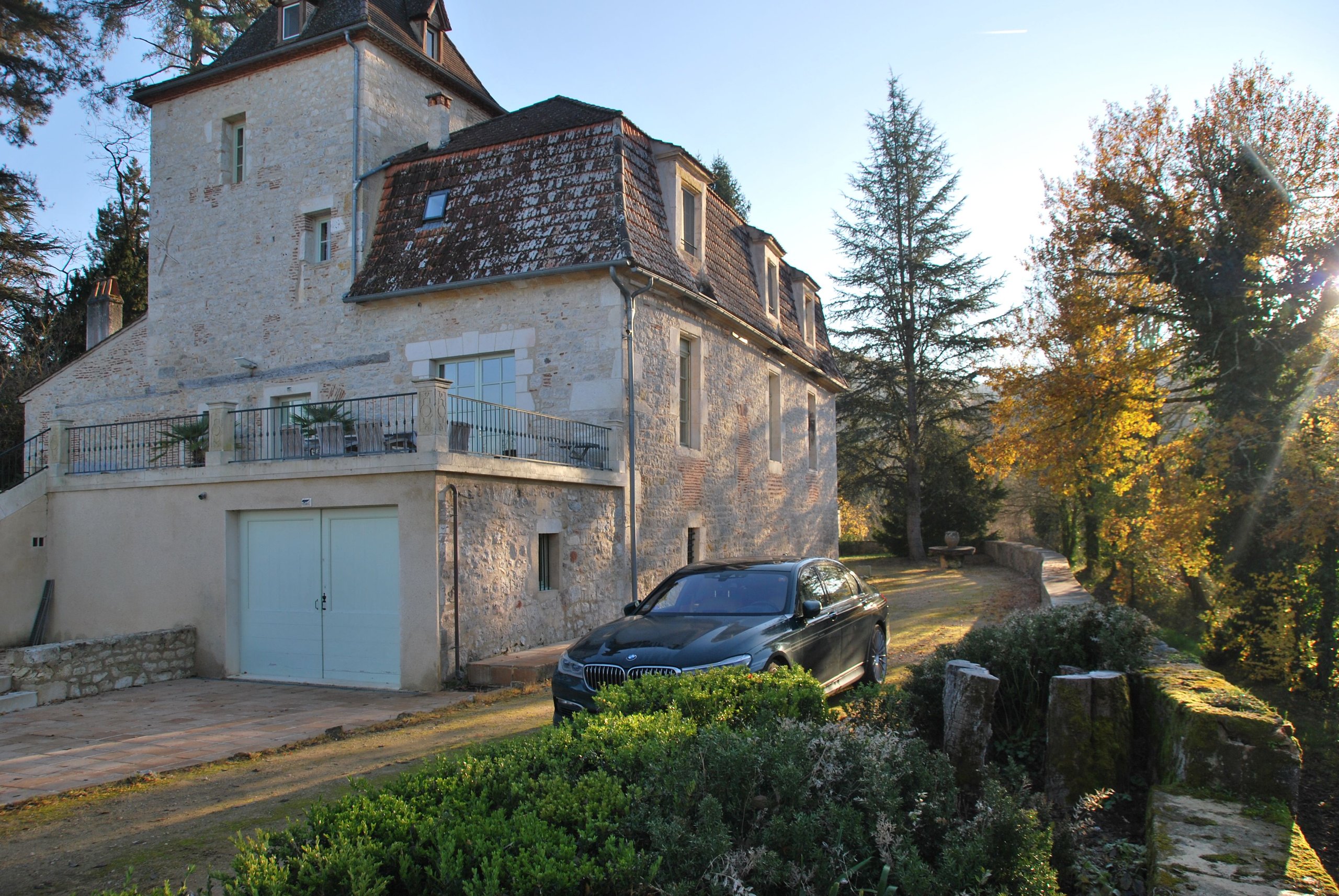 The property is a former manor house on the banks of the Lot river, in an area of 3,7 hectares. The Manor is surrounded by an oasis of greenery, water and tranquillity. From the large terrace, on the first floor, you have a beautiful view of the river, the village castle, the heated swimming pool and the tennis court. On the ground floor, a wine cellar, a storage room for boats with an exit to the river, a workshop and the pool house with renewed salt purification system. You enter through the terrace into an elegant entrance with a cloakroom on the left and a toilet on the right. Then you enter a large living space with a kitchen with island, a dining room and a living room with a large central fireplace. Parquet and beautiful French ceiling. Because we are on the first floor and there are large windows on both sides, this room offers a wonderful light and a wonderful view of the river. The first bedroom is located in a chapel with a beautiful vaulted ceiling. A private bathroom. The second bedroom is a suite on the second floor with a spacious living area, a separate bedroom and a private bathroom with a shower. View of the river. In the tower there is a sleeping place for 4 people (2 double beds on the first and second floor), a Victorian bathroom with bath, double sink and toilet. Unique view of the surroundings and the river. The restoration and finishing of this house is very qualitative, all the windows have interior shutters, the stairs have been restored with authentic stones. The old Pigeonnier has been completely transformed into a comfortable accommodation with kitchen, bathroom, storage room and laundry room, an office and a two bedrooms.