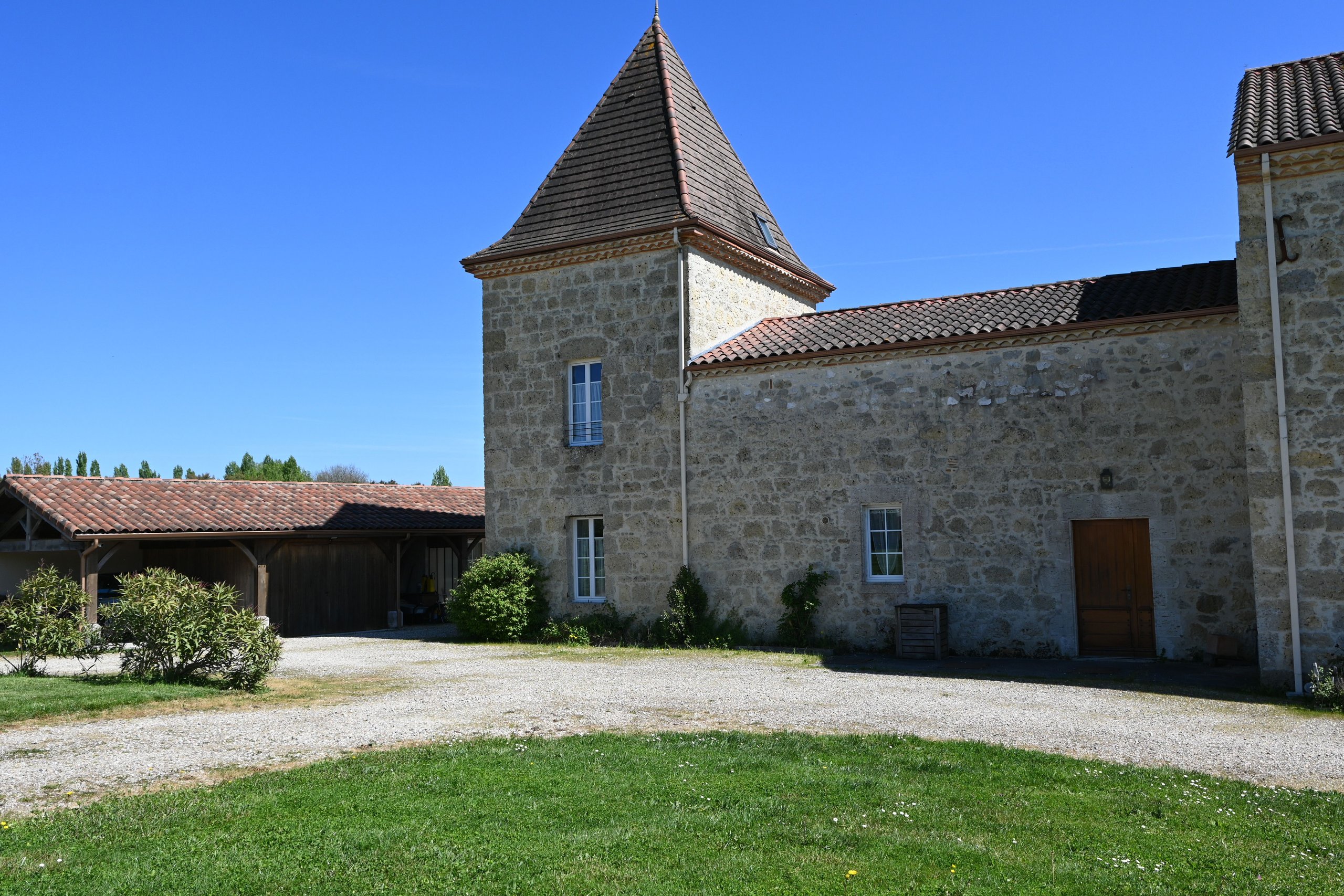 Cette élégante bâtisse en pierre datant de 1800 se démarque par sa construction symétrique avec une tour de chaque côté. Elle est entièrement restaurée avec des matériaux de grande qualité, on profite du charme de l’ancien avec tout le confort moderne dans un cadre verdoyant et un jardin autour de trois hectares.