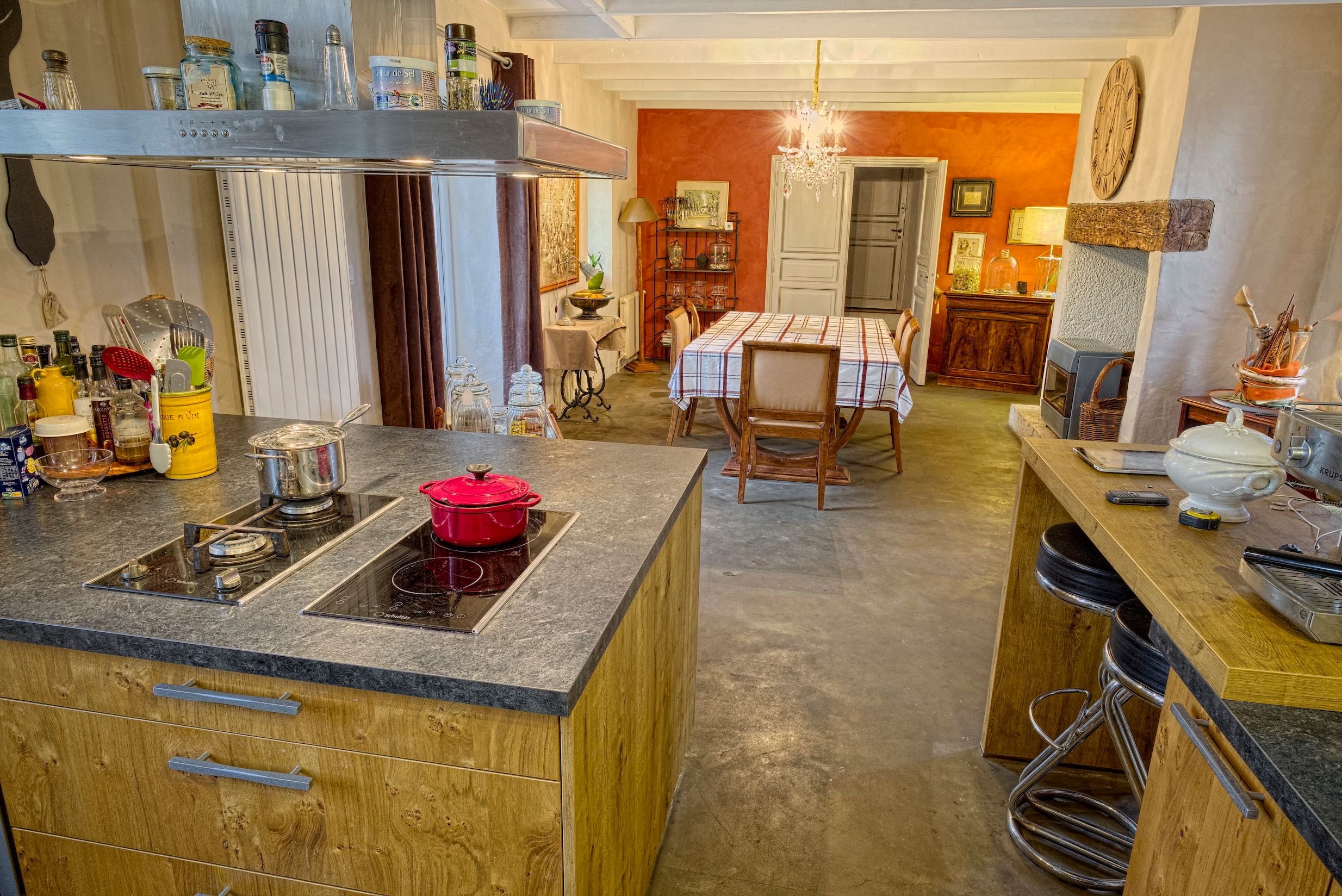 Ce domaine a été entièrement restauré dans un style magnifique avec des matériaux anciens. Une première bâtisse comrend d'une part l'habitation avec 2 chambres, 1 dressing, 1 salle de bain et 1 salle d'eau, salon avec cheminée, cuisine et salle à manger, bureau, réserve et d'autre part, pouvant être réuni ou séparé ( entrée indépendante et communication interieure) un second espace avec salle à manger/cuisine, salon et mezzanine, 4 chambres à coucher, 1 salle de bain et 1 salle d'eau. Autour de la maison plusieurs terrasses. Dans le pigeonnier se trouve une maison d'amis avec 2 chambres à coucher, salon-cuisine, salle d'eau. Une ancienne grange a été transformée en piscine couverte chauffée avec terrasse et solarium. Une autre vieille grange est utilisée pour le stockage et la réserve. Dans le parc de 3 ha, il y a de vieux arbres et une belle vue sur une campagne vallonée.