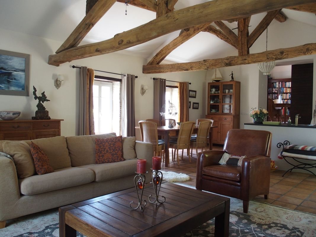 Het huis is een tiental jaar geleden volledig gerestaureerd met veel smaak en authentieke materialen (terracotta, oude houten deuren, schouwen en balkenplafond). De daken zijn vernieuwd en in de woonkamer ligt vloerverwarming.