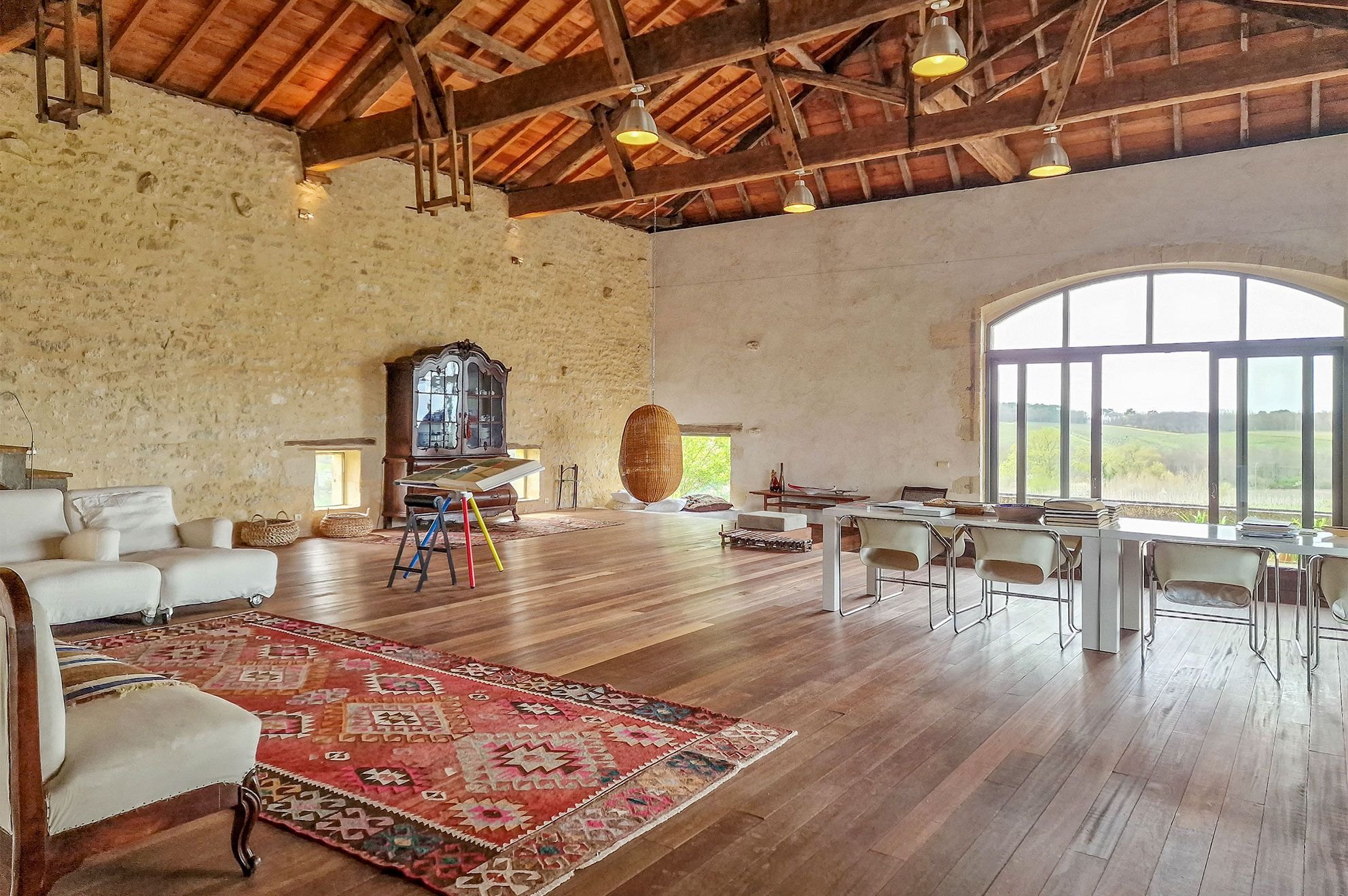 Those who love good food, local markets, wine tasting, walking, cycling, kayaking and golf have found their dream destination. In the middle of the wine region, 80 kilometers from Bordeaux and 25 kilometers from Saint-Emilion, on a hill surrounded by vineyards and closed by a forest, this beautiful property is located on approximately 1.5 hectares. An idyllic country road gives access to the houses, around which the deer come to play hide and seek every day. Completely isolated from the outside world, yet only 3.5 kilometers from Pellegrue, a most charming village with all facilities. In the area: a fresh market every day, many classical concerts, a renowned jazz festival and even surprisingly good cinemas - so you won't be bored for a moment.