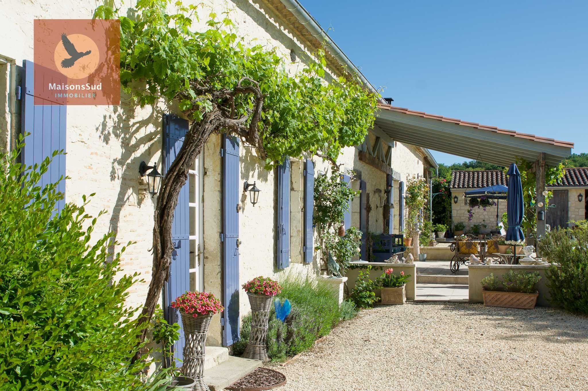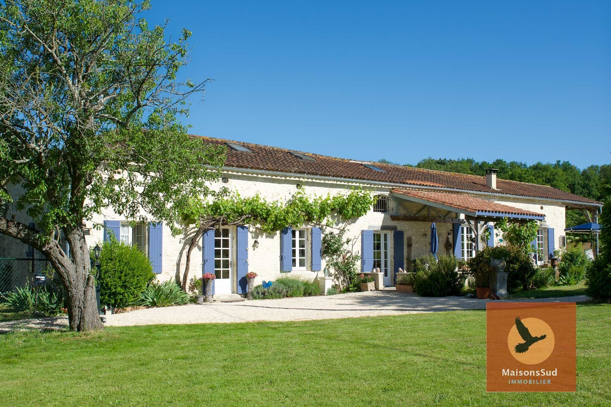 Located at the end of a country lane, in an idyllic and peaceful setting, we present a magnificent estate comprising a spacious house with a swimming pool, a barn, and a carport. The flat, one-hectare plot is fully fenced. The property enjoys a prime location: surrounded by nature, it is ideally situated between the lively bastide towns of Monflanquin and Villeréal. Bergerac Airport is 30 minutes away. Bordeaux and Toulouse-Blagnac airports are approximately two hours away by car. Agen TGV train station is less than an hour away.